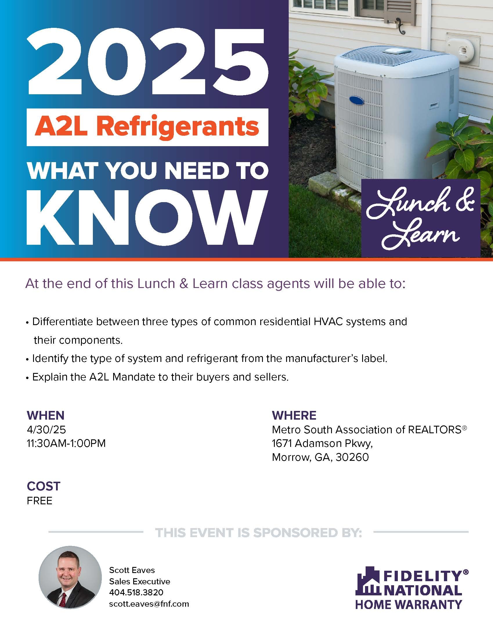 At the end of this Lunch & Learn class agents will be able to: • Differentiate between three types of common residential HVAC systems and their components. • Identify the type of system and refrigerant from the manufacturer’s label. • Explain the A2L Mandate to their buyers and sellers.