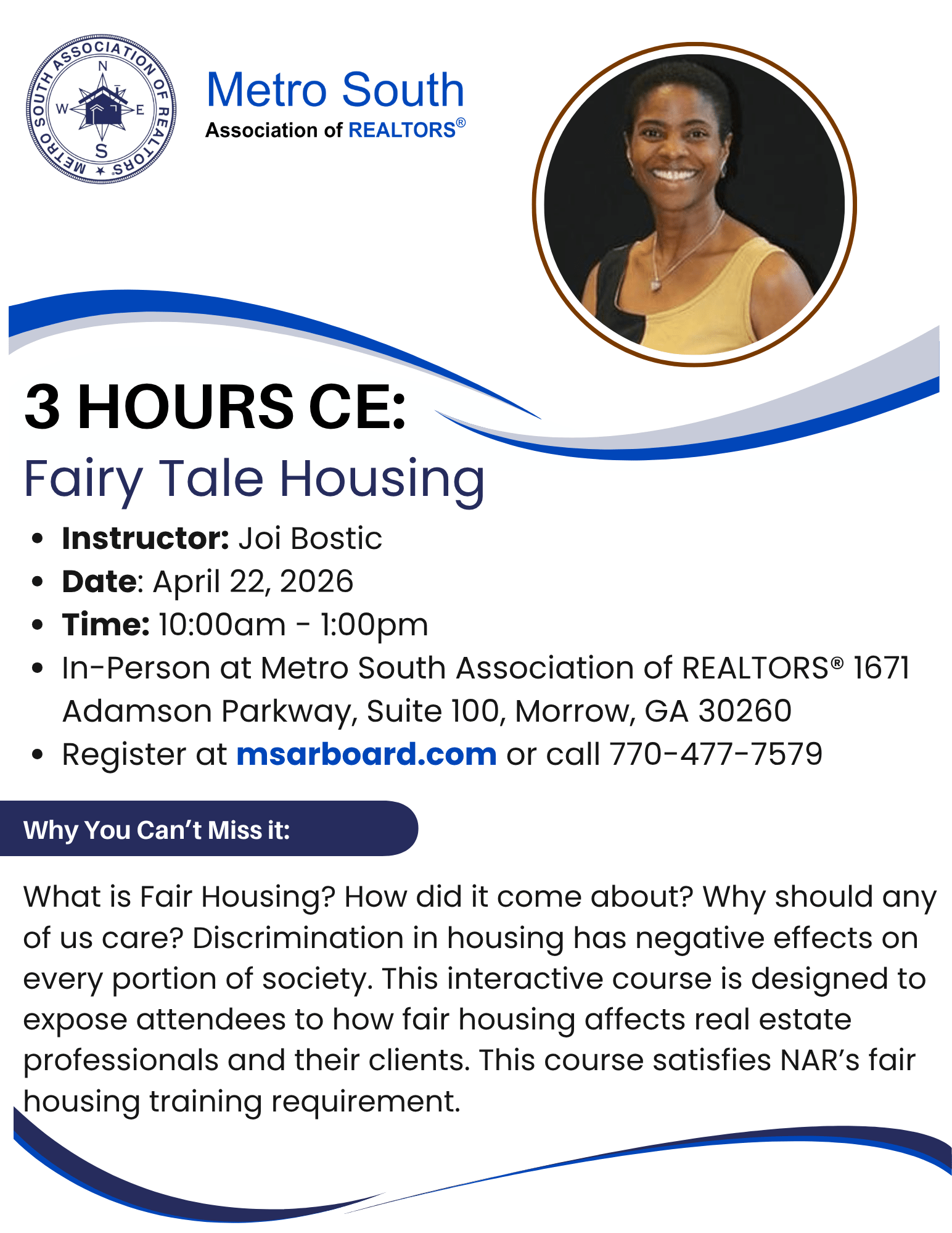What is Fair Housing? How did it come about? Why should any of us care? Discrimination in housing has negative effects on every portion of society. This interactive course is designed to expose attendees to how fair housing affects real estate professionals and their clients. This course satisfies NAR’s fair housing training requirement.